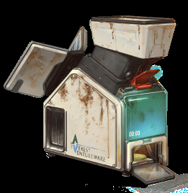 Everest VentureWare developed the Mr. Biscuit Multi-Food Processor with increasingly common food scarcity in mind. Any organic material can be fed into the machine for processing. This means hay, grass, leaves, squirrels, woodchips, and more! The machine then breaks down the organic material using nano-technology to draw out any favorable nutrients. After ten minutes it prints a series of (usually) green wafers. Despite somehow tasting worse than Kibble these wafers are filling and nutritious.